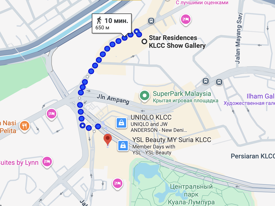 - Локация премиум-уровня — одна из ближайших к KLCC зон проживания; 10 мин. пешком до Башен Петронас, торгового центра Suria KLCC, парка и метро.
