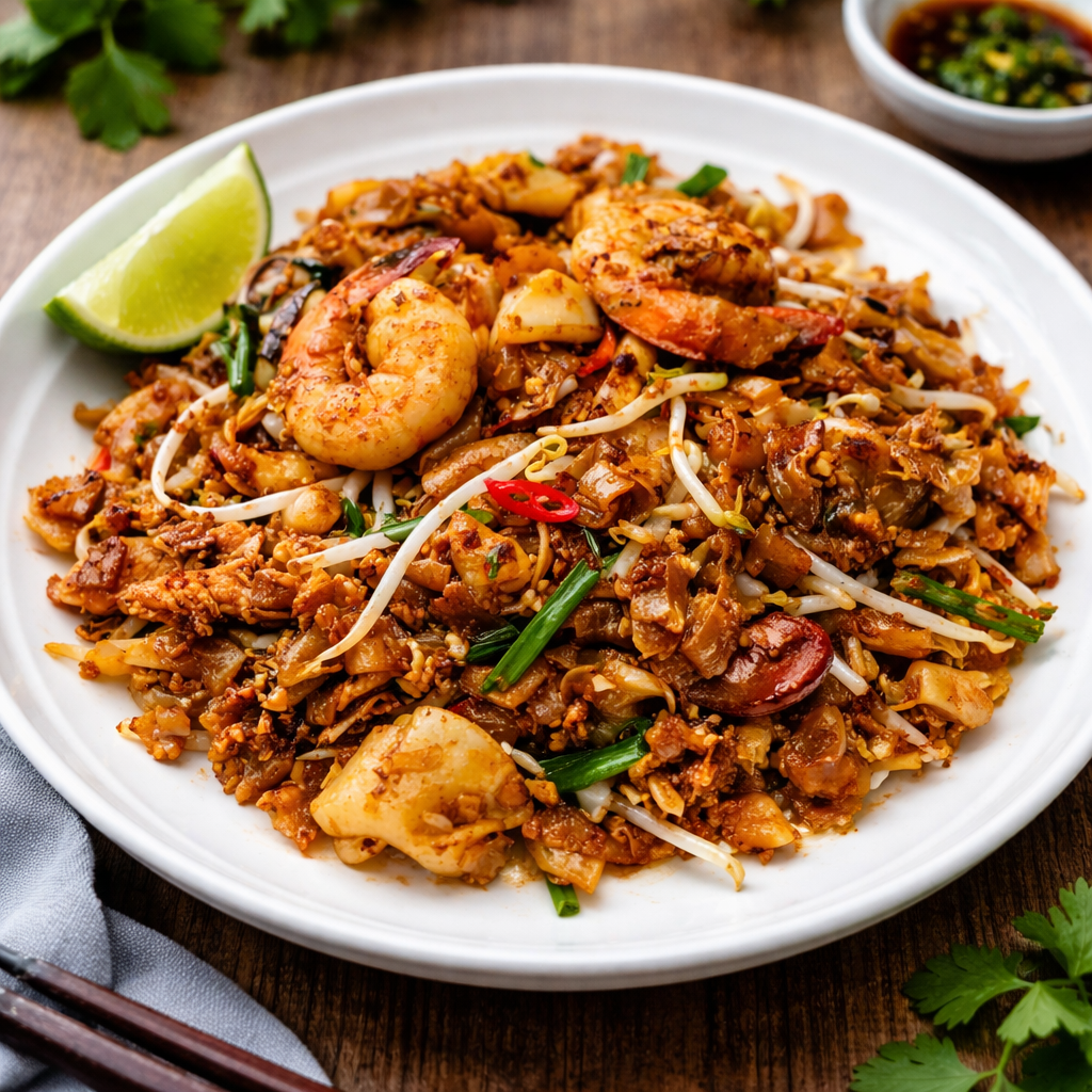 Char Kway Teow — одно из самых вкусных блюд китайско-малайзийской кухни. Это широкая рисовая лапша, обжаренная на сильном огне в воке с соевым соусом, яйцом и морепродуктами. Главная особенность блюда — лёгкий аромат «дымка» (wok hei), который появляется благодаря быстрой жарке на очень высокой температуре.